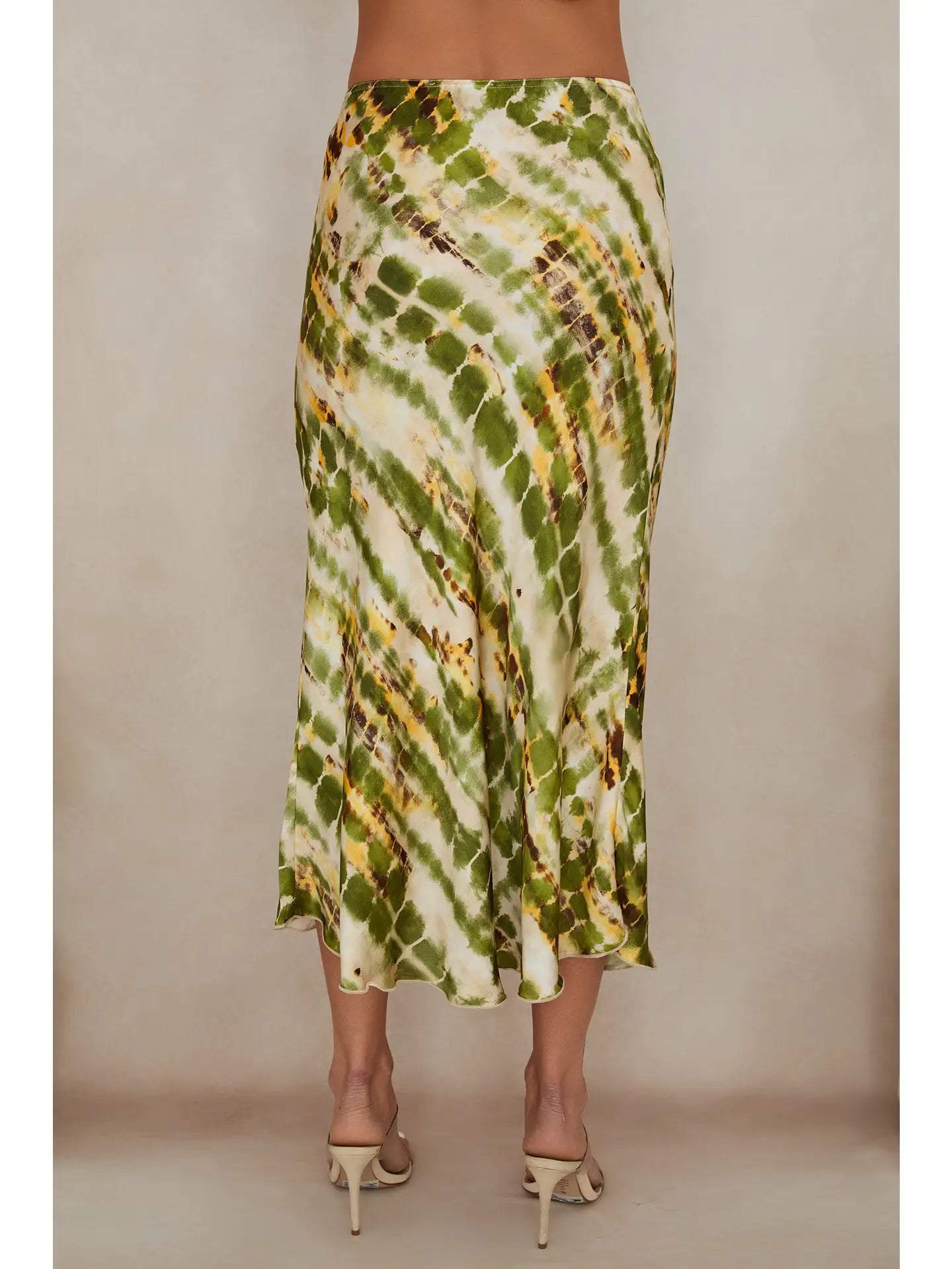Abstract tie dye silky midi skirt with its stunning abstract tie-dye design and smooth, silky material, this midi skirt is a versatile and stylish addition to any wardrobe. The unique pattern and comfortable fit make it a must-have for any fashion-forward individual.