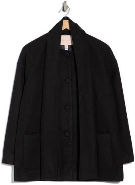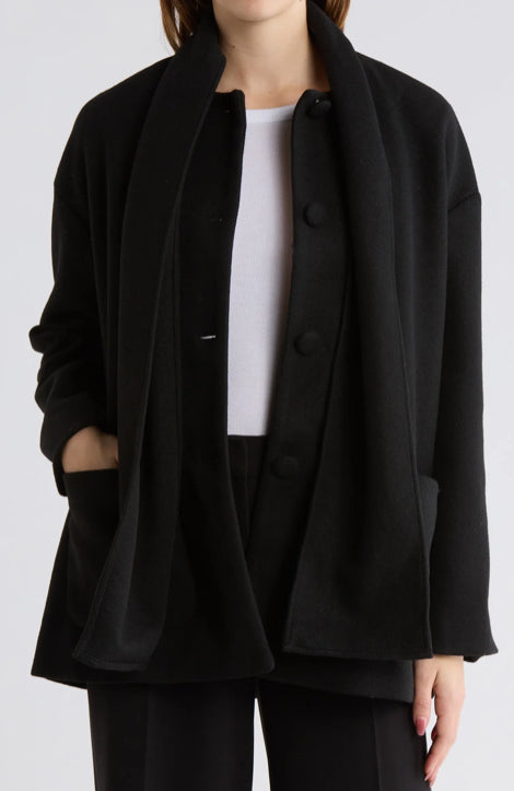 Never forget your scarf when you chose a luxe single-breasted jacket that comes with one already attached.