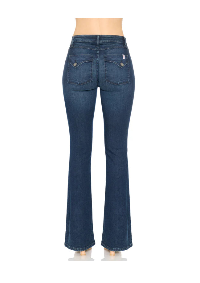 A modern nod to classic Western flair. The Equestrian flatters with a sculpted fit through the hip and thigh, kicking out to a sleek bootcut that elongates the leg. Designed with signature flap back pockets and a distinctive front pocket detail that adds just the right touch of refinement from every angle.