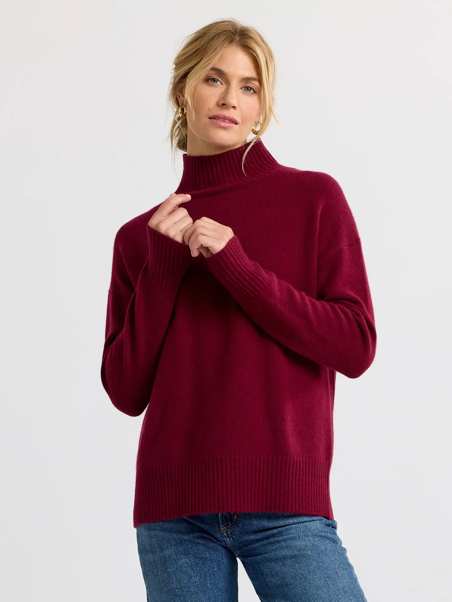 This oversized cashmere turtleneck moves with ease, featuring a relaxed silhouette and a funnel neck that sits just right—structured yet never stiff. Subtle piping along the back and ribbed trims add a quiet sophistication, making it a piece you’ll instinctively reach for, no matter the occasion.