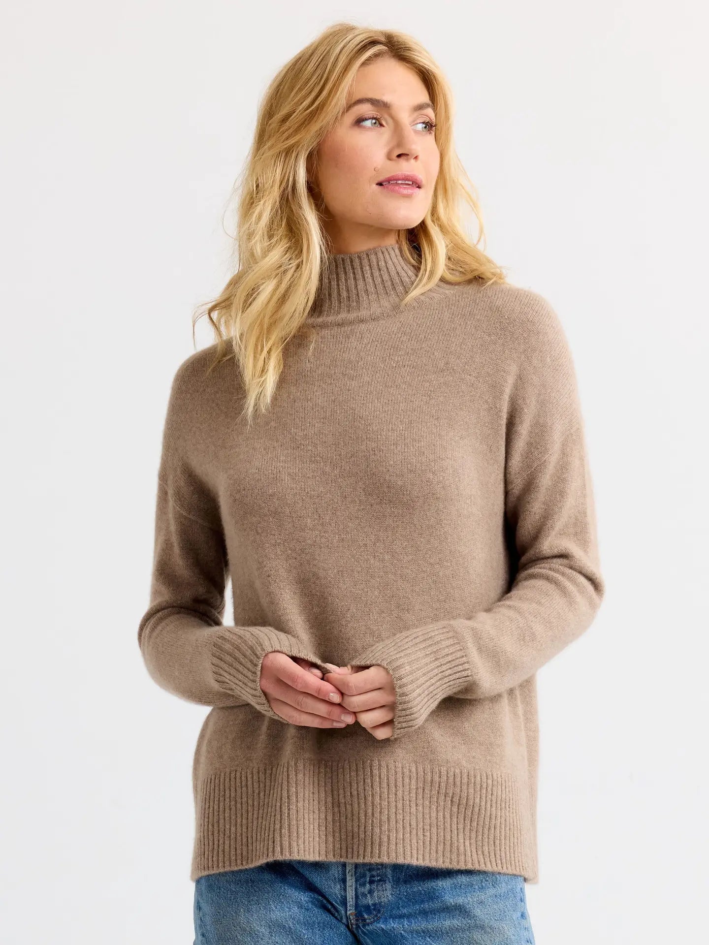 This oversized cashmere turtleneck moves with ease, featuring a relaxed silhouette and a funnel neck that sits just right—structured yet never stiff. Subtle piping along the back and ribbed trims add a quiet sophistication, making it a piece you’ll instinctively reach for, no matter the occasion.