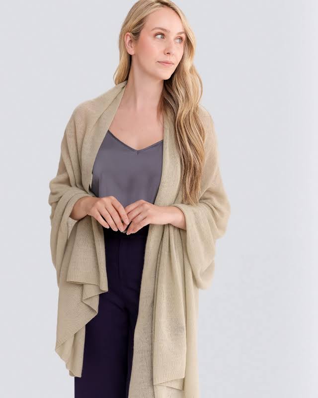 LUCIA Ultimate Travel Duster wraps customers in our signature blend of 10% cashmere, 40% merino fleece and 50% eco-viscose. This elegant, unfussy wrap resists pilling, stretching, and holds up beautifully. Part of our growing Travel Collection, Lucia goes from home to office to Maine Island ferry to jazzy evening on the town. Essential layer of cozy warmth for four-season travel. A customer favorite across all platforms.